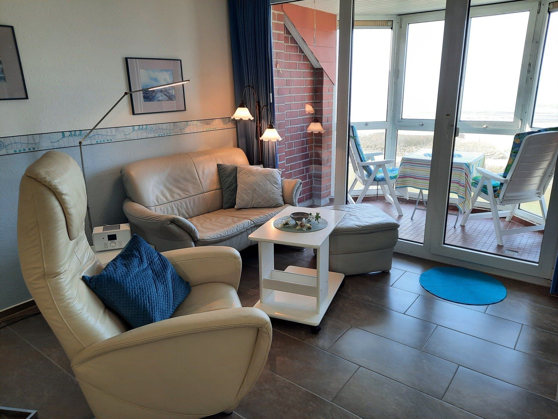 Die Wohnung ist ca.42 qm groß, hat direkten Blick auf Strand, Meer und die Insel Neuwerk. Sie ist nach Süd-Westen ausgerichtet, so dass man die Sonne mit zwei Relaxliegen vom verglasten Balkon aus bei jedem Wetter genießen kann.