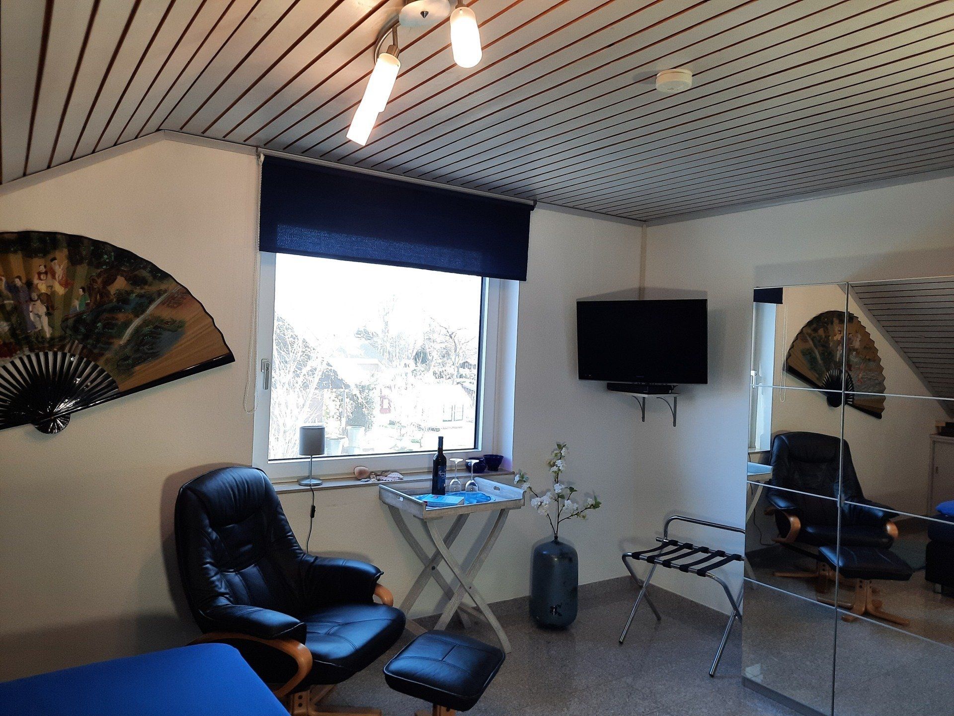 Ein weiterer großer Flachbildfernseher ist im Wohnraum vorhanden. WLAN kann in allen Räumen kostenlos genutzt werden.